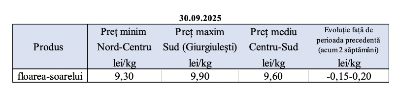 Pe lângă influența care vine din America Latină, se mai adaugă oferta ieftină propusă de Rusia, unde uleiul de floarea-soarelui se vinde la 1.125 de dolari/t FOB. În paralel, piața ucraineană a semințelor de floarea- soarelui continuă să înregistreze o tendință descendentă a prețurilor, chiar dacă ritmul de scădere s-a temperat pe fondul unei ușoare redresări a prețurilor în segmentul uleiului. Procesatorii au achiziționat săptămâna trecută semințe la valori cuprinse între 26.200 și 27.300 UAH/t CPT, cu variații în funcție de regiune, calitate și termenele de livrare.
