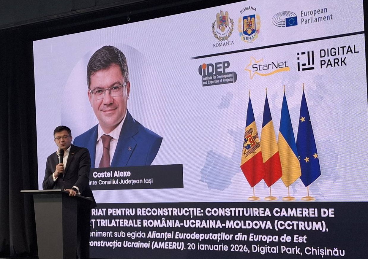 „Reconstrucția Ucrainei nu este doar un demers de solidaritate, ci o responsabilitate strategică europeană. Prin inițiative precum Camera de Comerț Trilaterală România–Ucraina–Moldova, creăm un cadru concret pentru investiții, cooperare economică și stabilitate regională. AMEERU susține ferm transformarea dialogului politic în instrumente funcționale pentru mediul de afaceri și pentru autorități. Conferința de la Chișinău continuă seria de demersuri inițiate de AMEERU la Bruxelles, București și Iași, unde a fost validată necesitatea înființării CCTRUM ca platformă dedicată coordonării proiectelor de reconstrucție și investițiilor strategice în regiune”, a subliniat Gheorghe Falcă.
