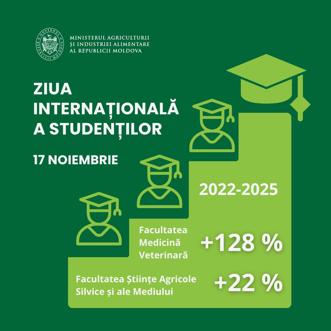 În perioada 2022–2025, instituțiile de învățământ superior înregistrează o creștere constantă a numărului de studenți în domeniile agricole. Cifrele sunt prezentate cu ocaziei Zilei Naționale a Studenților.