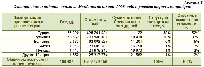 Общая картина экспорта масличных культур из Молдовы в январе 2026 года