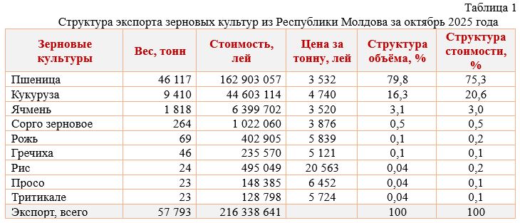 Экспорт молдавского зерна в октябре 2025: диверсификация рынков