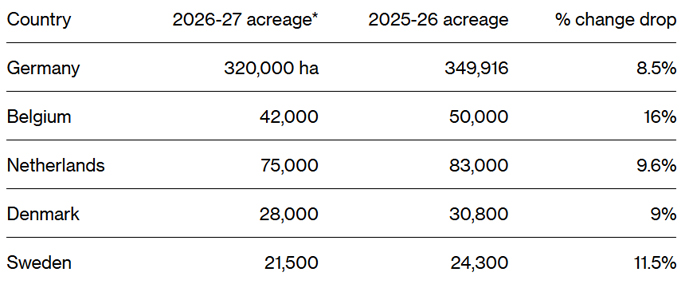 Производители сахарной свеклы в Европейском Союзе планируют сокращение посевных площадей примерно на 10% в 2026/27 МГ.