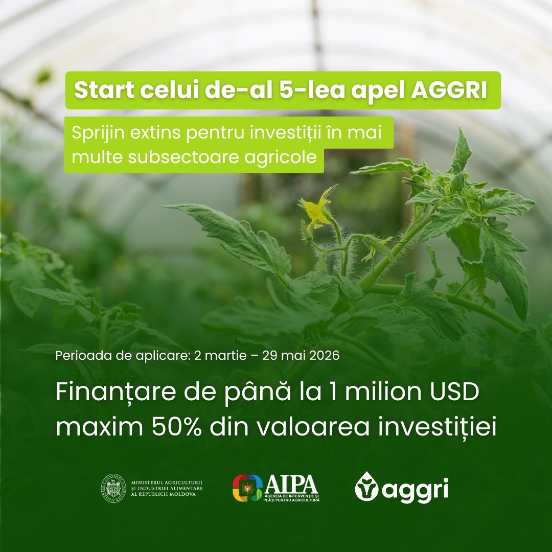Perioada de depunere a cererilor începe la 2 martie 2026 și se încheie la 29 mai 2026. Valoarea maximă a unui grant poate ajunge la 1 milion USD, fără a depăși 50% din valoarea investiției eligibile. Pentru sectorul culturilor de nișă, valoarea investiției nu va depăși 70 de mii USD per beneficiar, cu excepția cooperativelor, unde plafonul este de 300 de mii USD.