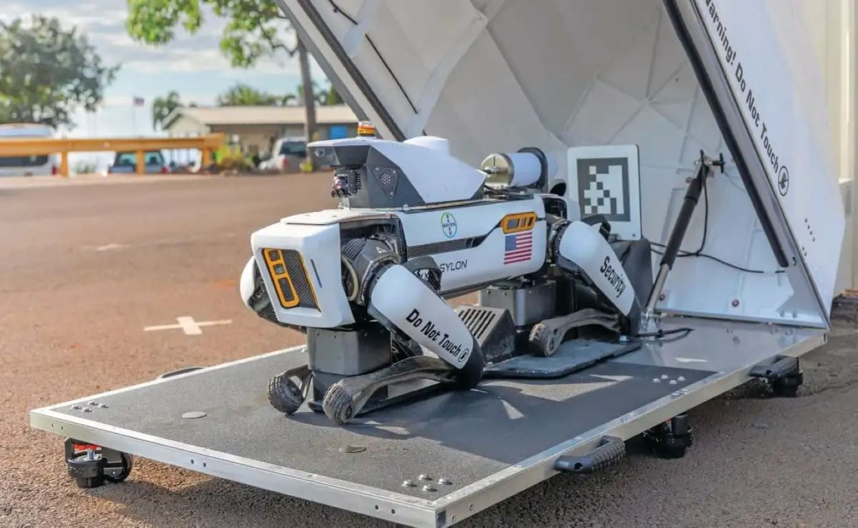 DroneDog оснащён тепловизионными и электрооптическими камерами с 20‑кратным зумом, ИИ‑классификаторами, а также системой подключения к облаку для удалённого управления и прямой трансляции. Операторы могут в режиме реального времени отслеживать обстановку и получать оповещения о потенциальных угрозах. Когда робот не на задании, он возвращается в DogHouse — специальную будку для защиты от непогоды и зарядки аккумуляторов.