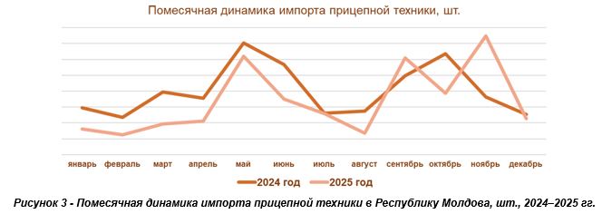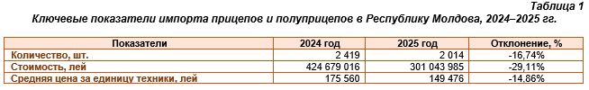 Рынок прицепной техники Республики Молдова в 2024–2025 годах пережил период коррекции, сохранив при этом свою структурную целостность. Совокупный объем импорта за два года составил 4,4 тыс. единиц на сумму 725,7 млн леев — внушительная цифра для небольшой экономики, однако динамика 2025 года указывает на снижение спроса.