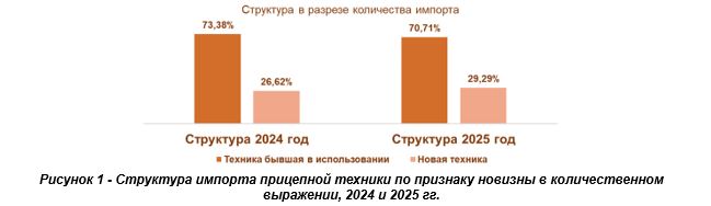 Подержанная техника по-прежнему составляет основу рынка — около 70–73 % в количественном выражении и 74–80 % в стоимостном. Однако доля новых машин стабильно растет, и при сохранении этой тенденции через 3–5 лет соотношение может выровняться до 60/40. Особенно ускоряется этот процесс в сегменте, где ценовая стабильность новой техники создает более предсказуемые условия для планирования.