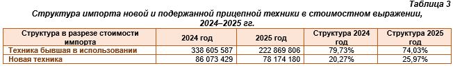 Из таблицы 3 следует важный вывод: стоимость подержанной техники упала на 34,2 %, в то время как стоимость новой — всего на 9,2 %. Иными словами, именно падение цен на подержанную технику стало основной причиной общего снижения стоимости импорта.