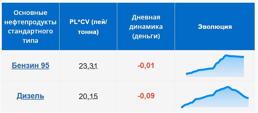 Согласно данным агентства, литр бензина A-95 будет стоить 23,31 лея, что на один бан меньше по сравнению с предыдущим показателем. Цена дизельного топлива без коммерческого названия составит 20,15 лея за литр — снижение на девять банов.