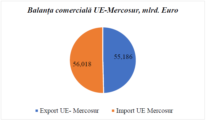 Potrivit expertului în agro-market, Iurie Rija, din punct de vedere economic, relația comercială dintre Uniunea Europeană și Mercosur indică un volum total al schimburilor comerciale de peste 111 miliarde de euro pentru anul 2024, cu exporturi europene către Mercosur de 55,2 miliarde de euro și importuri din Mercosur de 56 miliarde de euro.